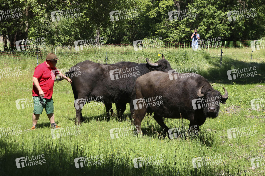 Natur, Umweltschutz, Tierschutz, Wildpflanzenschutz, Tiere, Rinder, Wildrinder, Rind, Bubalus arnee, Bovinae, Stirnwaffenträger, Hornträger, Asiatische Büffel, Wiese, Weide, Insel, Havel