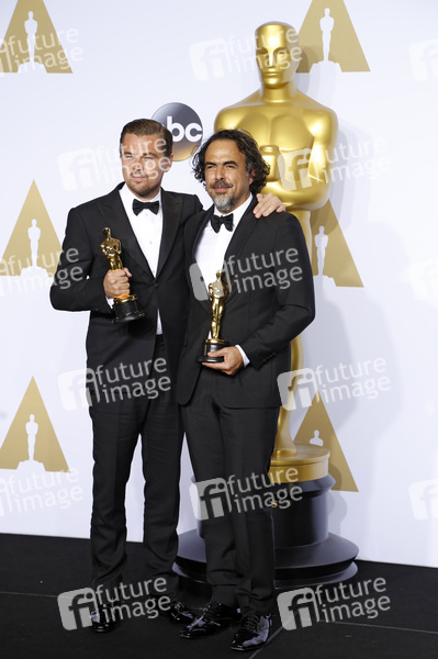 Leonardo DiCaprio und Alejandro Gonzalez Inarritu (Bester Hauptdarsteller und Beste Regie 'The Revenant - Der Rückkehrer') im Presseraum der Oscar Verleihung 2016 / 88th Academy Awards im Loews Hollywood Hotel. Los Angeles, 28.02.2016)