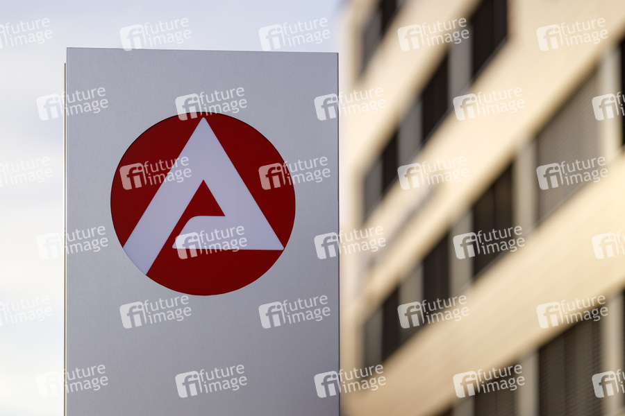 Arge-Logo an der Agentur für Arbeit in Ossendorf. Die Corona-Krise lässt die Zahl der Arbeitslosen weiter steigen, während noch ein vereinfachter Antrag für die Beantragung von Grundsicherungsleistungen ohne Vermögensprüfung gilt. Köln; 04.08.2020