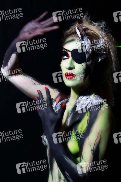 Bodypainting, Erotik, Frau, Mädchen, nackt, drinnen, weiblich, Körperkunst, Kunst, Malerei, Augenklappe, erotic, woman, girl, nude, indoor, female, body art, body painting, eyepatch