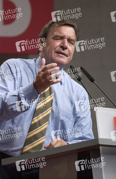 Wahlkampfveranstaltung der SPD in Magdeburg mit den beiden Spitzkandidaten der SPD in Sachsen-Anhalt, Gerhard Schröder und Matthias Platzeck
