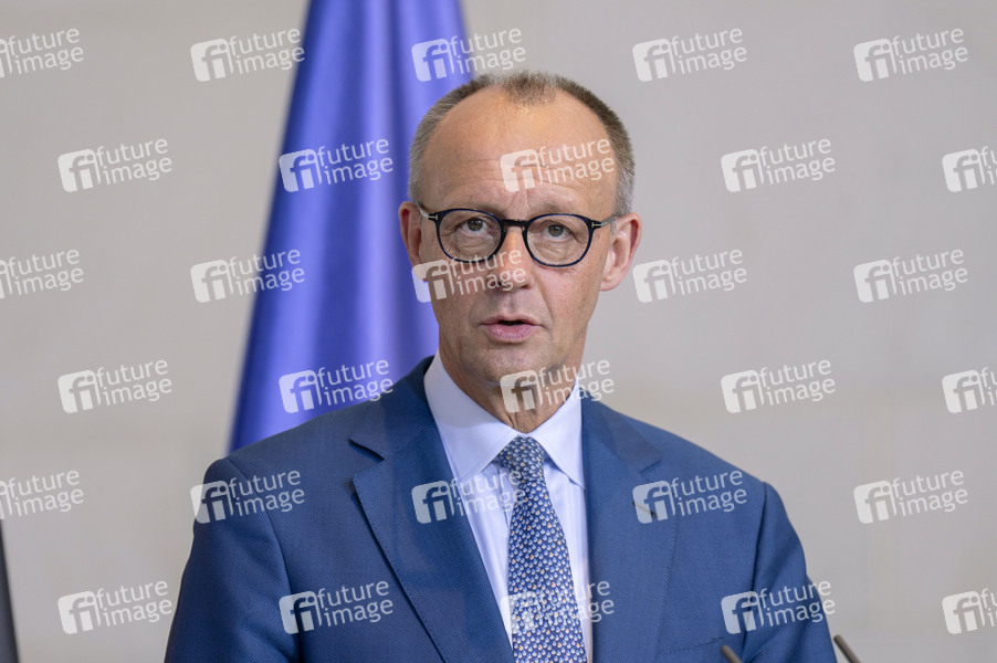 Friedrich Merz beim Empfang des österreichischen Bundeskanzlers mit militärischen Ehren zu einem gemeinsamen Gespräch mit anschließendem Pressestatement im Bundeskanzleramt. Berlin, 27.06.2025