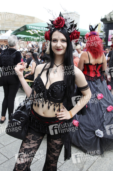 Festivalbesucher beim 28. Wave-Gotik-Treffen auf dem Agra-Gelände. Leipzig, 09.06.2019