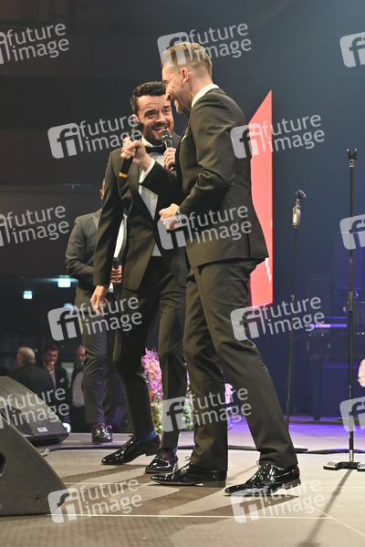 Giovanni Zarrella und Tom Marks von Vintage Vegas live beim 10. Ball der Unternehmer 2022 in Halle 3C der NürnbergMesse. Nürnberg, 15.10.202323