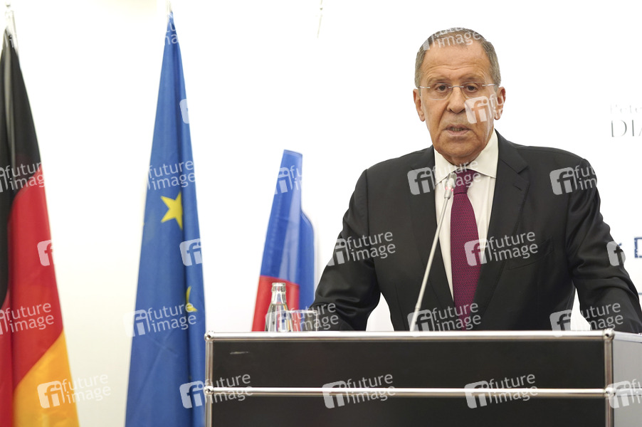 Sergei Wiktorowitsch Lawrow / Sergey Lavrov bei einer Pressekonferenz zur Eröffnung vom 18. Petersburger Dialog 2019 im Steigenberger Hotel. Königswinter, 18.07.2019