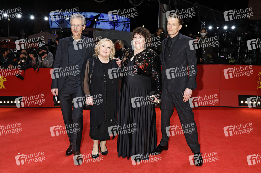 Bernhard Docke, Rabiye Kurnaz, Meltem Kaptan und Alexander Scheer bei der Premiere des Kinofilms 'Rabiye Kurnaz gegen George W. Bush' auf der Berlinale 2022 / 72. Internationale Filmfestspiele Berlin im Berlinale Palast. Berlin, 12.02.2022
