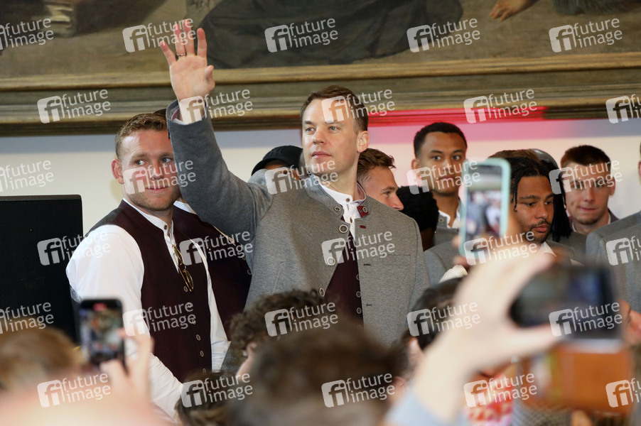 Manuel Neuer bei der Meisterfeier des FC Bayern München auf dem Balkon des Rathauses am Marienplatz. München, 18.05.2025