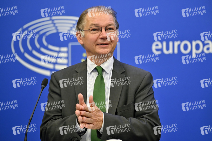 Pressekonferenz, PK, Pressestatement, Strasbourg, Europaparlament, EU-Parlament, EP, Parlament der Europäischen Union, Parlamentum Europaeum, Mitglied des Europäischen Parlaments, Politiker, Belgien, Ecolo, Co-Vorsitzender der Fraktion Die Grünen/EFA