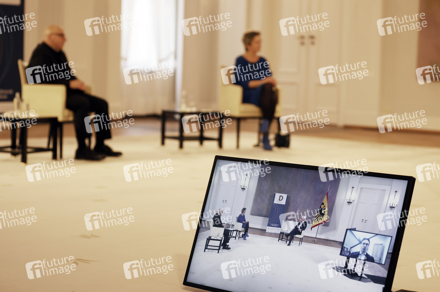 Armin Nassehi und Margrethe Vestager beim 11. Forum Bellevue: 'Demokratie und digitale Öffentlichkeit - Eine transatlantische Herausforderung' im Schloss Bellevue. Berlin, 01.03.2021