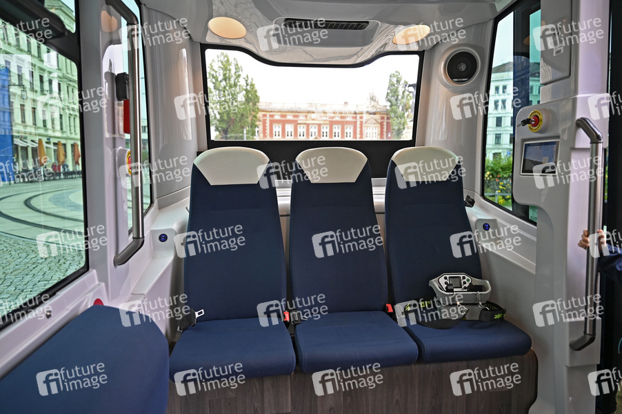 Ein Autonomes WALEMObase-Fahrzeug auf der Ausstellungsmeile rund um Forschung und Praxis zur Zukunft der Mobilität anlässlich der Europäischen Mobilitätswoche auf dem Postplatz. WALEMO steht für Wasserstoff, Leichtbau und autonome Mobilität. Görlitz, 16.09.2024