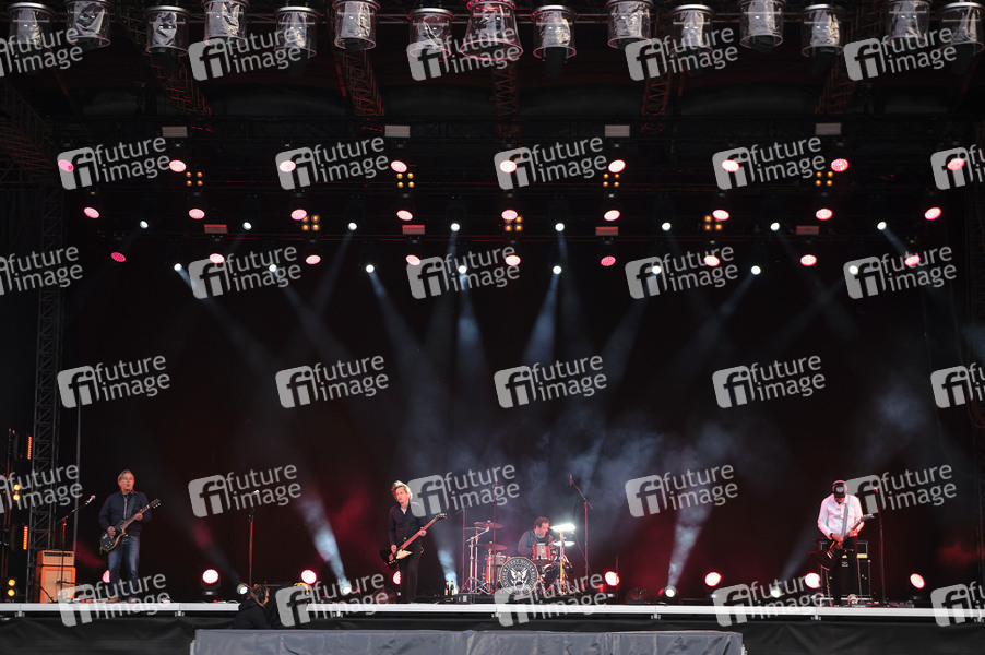Marcus Wichary, Kai Schiering, Hachy M. Hachmeister und Jenzzz Gallmeyer von Terry Hoax live beim Autokultur-Konzert auf dem Schützenplatz. Die Besucher verfolgen unter Berücksichtigung klarer Hygiene-Vorschriften während der Corona-Krise den Auftritt aus dem Auto. Hannover, 10.05.2020
