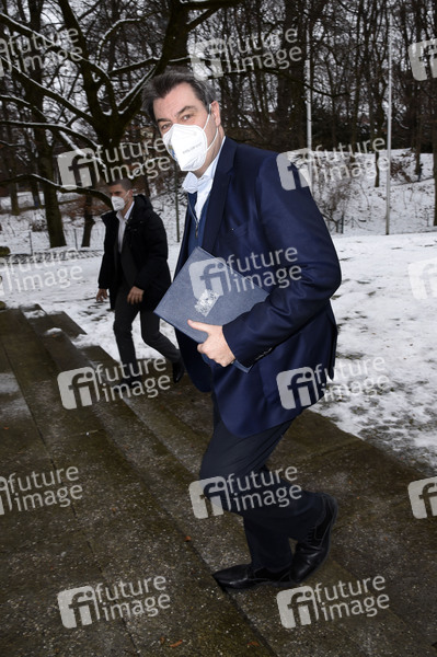 Markus Söder bei der Pressekonferenz zu den aktuellen Entwicklungen der Corona-Pandemie und Verschärfung der Maßnahmen zu deren Eindämmung im Freistaat Bayern im Prinz-Carl-Palais. München, 12.01.2021