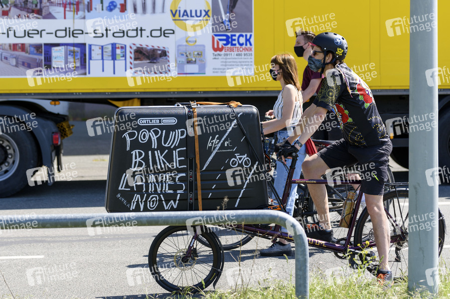 Aktion zum Bürgerbegehren 'Radentscheid Nürnberg 2020: für ein sicheres Miteinander' auf dem Volksfestplatz. Nürnberg, 21.05.2020