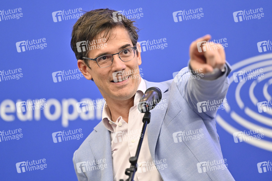 Bas Eickhout bei einer Pressekonferenz zum delegierten Taxonomie-Rechtsakt über Kernenergie und Gas im Europäischen Parlament. Straßburg, 05.07.2022