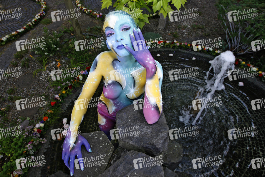 Bodypainting, Erotik, Frau, nackt, draußen, Steine, Felsen, Springbrunnen, weiblich, erotic, woman, nude, outdoor, female, rocks, stones, fountain