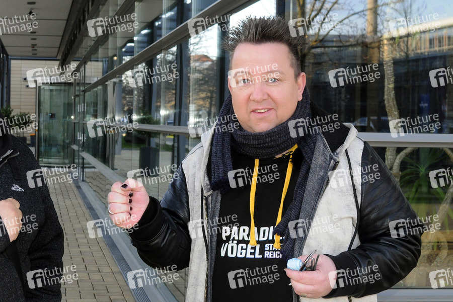 Sebastian Krumbiegel von Die Prinzen bei der Ankunft zur MDR Musikshow 'Ostern bei uns - Live!'. Leipzig, 03.04.2021