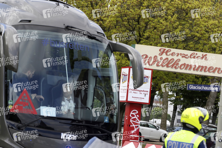 Unter dem Motto 'Rettung der flexiblen und individuellen Reise-Busbranche' demonstrieren Busunternehmer aus Norddeutschland mit einem Konvoi von Reisebussen gegen die aktuellen Reisebeschränkungen aufgrund der Corona-Pandemie. Hamburg, 07.05.2020