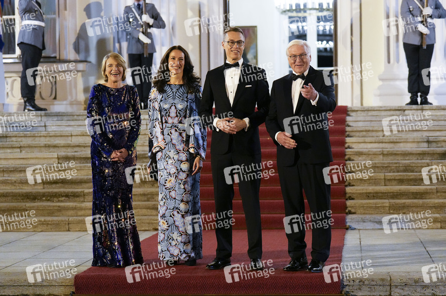 Elke Büdenbender, Suzanne Elizabeth Innes-Stubb, Alexander Stubb und Frank-Walter Steinmeier bei der Ankunft zum Abendessen anlässlich des 25. Jubiläums der Nordischen Botschaften im Schloss Bellevue. Berlin, 21.10.2024