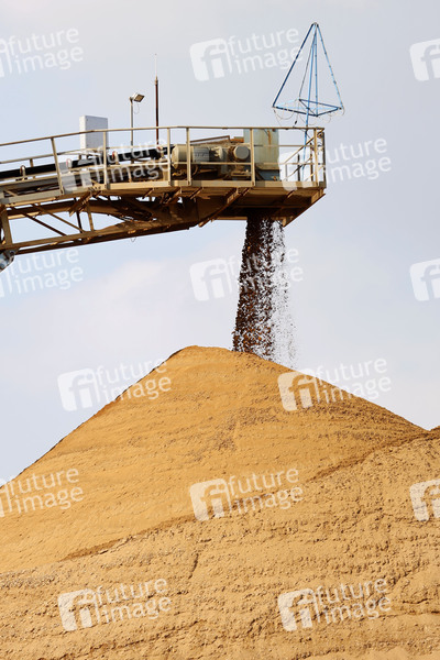 Aushub, Abbau, Sand, Sandgrube, Baustoff, Baustoffe, Sandwerk, Sandberg, Sandberge, Sediment, Mineral, Mineralien, Mineralkörner, Kieswerk, Kiesgrube, Quarzsand, Quarzsandwerk, Quarzkörner, Förderband, Sandsteinbruch, Körnung, Sand kaufen, Sandhandel, Bauindustrie, Rohstoff, Rohstoffe, Symbolbild, Symbolfoto