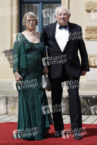 Günther Beckstein mit Ehefrau Marga Beckstein bei der Eröffnung der 113. Richard-Wagner-Festspiele 2025 mit der Neuinszenierung von 'Die Meistersinger von Nürnberg' im Bayreuther Festspielhaus. Bayreuth, 25.07.2025