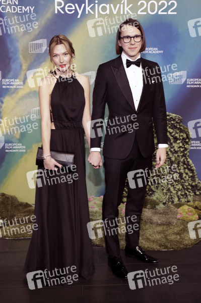 Saulius Baradinskas mit Begleitung bei der Verleihung des 35. Europäischen Filmpreises im Konzerthaus Harpa. Reykjavik, 10.12.2022