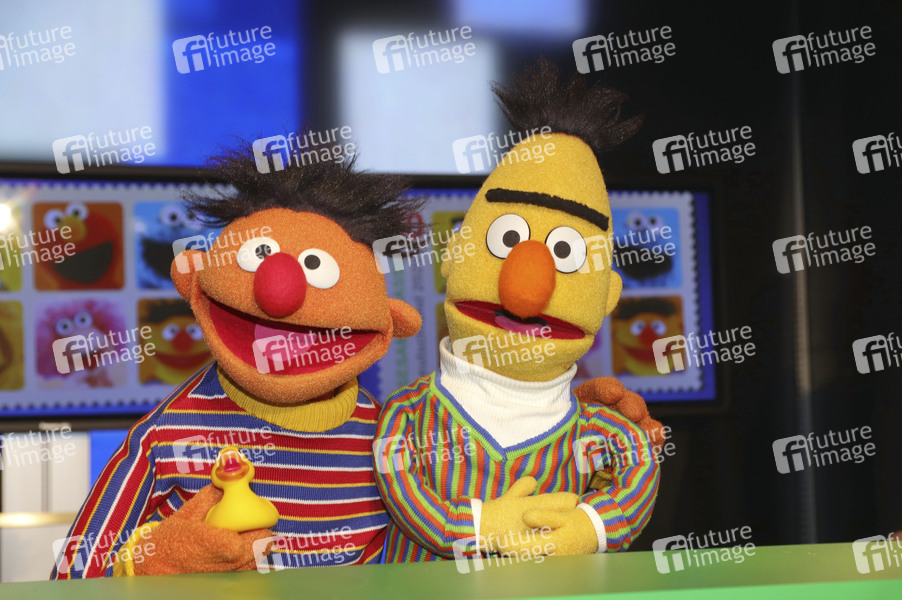 Ernie und Bert bei der Präsentation der Deutsche Post Sonderbriefmarke 'Sesamstrasse' im Sonderpostamt beim NDR Rundfunk. Hamburg, 02.03.2020