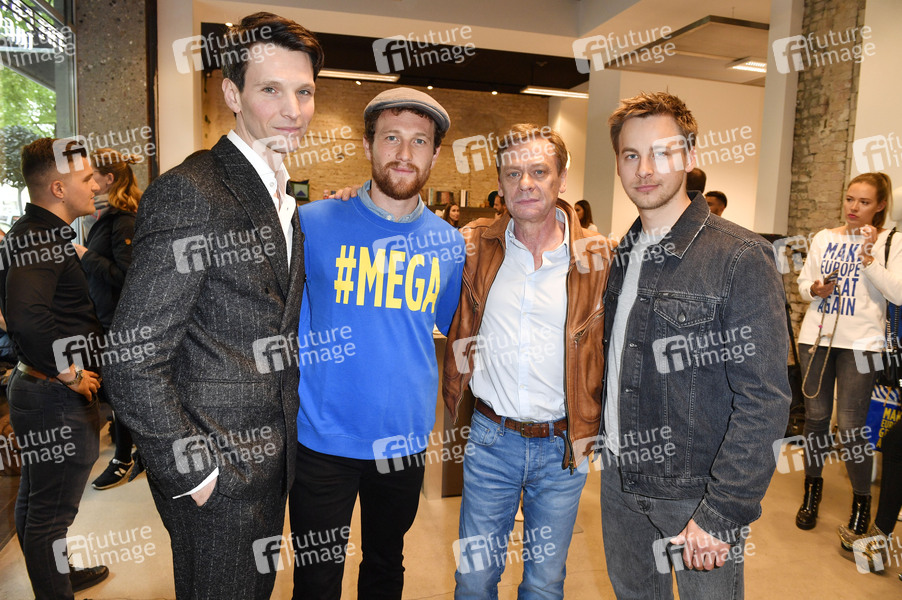 Sabin Tambrea, Artjom Gilz, Sylvester Groth und Timmi Trinks beim Kick-off Place To B: Make Europe Great Again / Präsentation der #MEGA-Kollektion in The Corner. Berlin, 29.04.2019