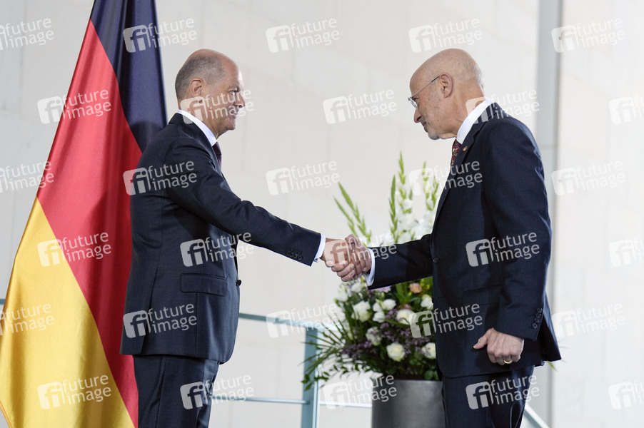 Olaf Scholz und Alan Meltzer beim Empfang des Diplomatischen Corps im Bundeskanzleramt. Berlin, 10.09.2024