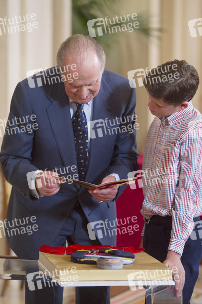 König Juan Carlos empfängt die Gewinner des 'Qué es un Rey para ti' Schulwettbewerbs im Zarzuela Palast, Madrid