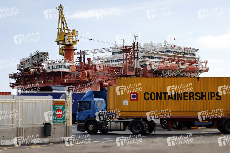 Die Floatel Reliance im Hafen von Santa Cruz de Tenerife dient als schwimmendes Hotel. Die als Wohnplattform konzipierte Halbtaucherinsel von Floatel International Ltd. trägt die Flagge Bermudas und dient gewöhnlich bis zu 500 Arbeitern einer Ölbohrinsel als 'schwimmendes Hotel', das unter anderem über eine Krankenstation, ein Kino, ein Fitnessstudio und einen Hubschrauberlandeplatz verfügt. Santa Cruz de Tenerife, 24.11.2021