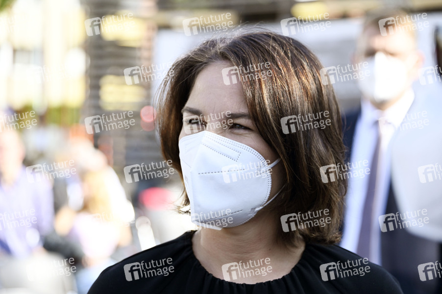 Annalena Baerbock bei der zentralen Gedenkveranstaltung zum 60. Jahrestag des Mauerbaus auf dem Vorplatz der Kapelle der Versöhnung an der Gedenkstätte Berliner Mauer an der Bernauer Straße. Berlin, 13.08.2021