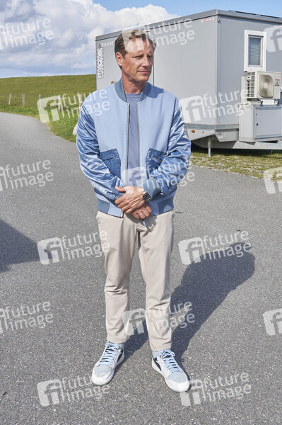Patrick Kalupa als Dr. Moritz Neiss bei Dreharbeiten zur ZDF-Fernsehserie 'Dr. Nice' am Leuchtturm Falshöft. Pommerby, 11.09.2025