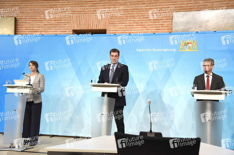Politikerin, Staatsministerin für Digitales in Bayern, Politiker, Ministerpräsident von Bayern, Staatsminister für Unterricht und Kultus in Bayern, CSU, Politik, PK, Corona, Sars-CoV-2, Covid-19, Coronavirus, Coronaviren, Corona-Virus, Coronakrise, Corona-Krise, Corona-Pandemie, Coronamaßnahmen, Corona-Schutz, flatten the curve, Ausnahmesituation