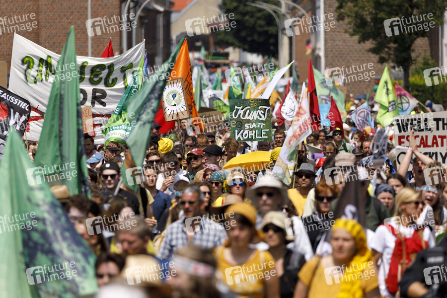 Erderwärmung, Klimagase, Kohlegegner, Klimaaktivisten, Klima-Notstand, Klimanotstand, Klimakrise, Klima-Krise, Energiewende, CO2, Treibhausgase, Klimaschutz, Schulstreiks für das Klima, Klima-Demonstration, Klima-Demo, Klimademo, Fridays for Future, Ende Gelände, Demonstration, Demonstranten, Demo, Kundgebung, Kohlekraft, RWE, Protest, Aktion, Banner, Parolen, Politik, Klimaschutz, Klimakrise, Klimawandel, CO2-Ausstoß, CO2-Steuer, Kohleausstieg, Fossile Brennstoffe, Klimapolitik, Hochneukirch, Keyenberg, Jüchen, Erkelenz, Grevenbroich, Tagebau, Garzweiler II, Braunkohlerevier, Climate Change, Jugendbewegung, Aktivismus, Climate Justice, Polizeikette, Polizei, Demonstrationszug, Braunkohlegegner, Grubenrand, Aktivisten, Goldener Finger, Polizei, Polizeikräfte, Aktionsbündnis, Neurath, Kohle, Kohleversorgung, Braunkohle, Steinkohle, Symbolbild, Symbolfoto
