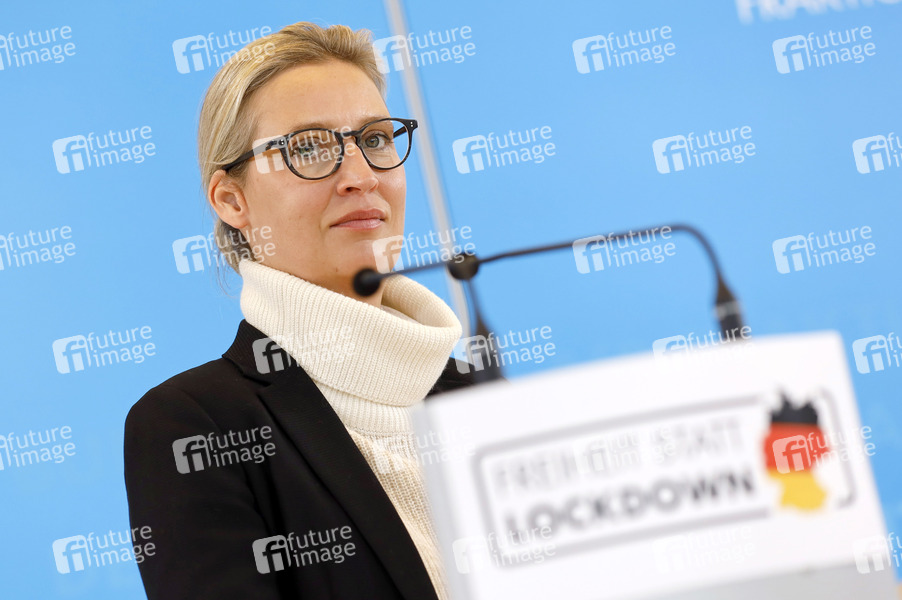 Politik, Pressekonferenz, PK, Reichstag, Sitzung, Regierung, Deutscher Bundestag, Demokratie, Abgeordnete, Parlament, Parlamentsgebäude, Bundesregierung, Volksvertreter, MdB, Mitglied des Bundestages, Politikerin, Co-Vorsitzende der AfD-Bundestagsfraktion, Oppositionsführerin im Bundestag