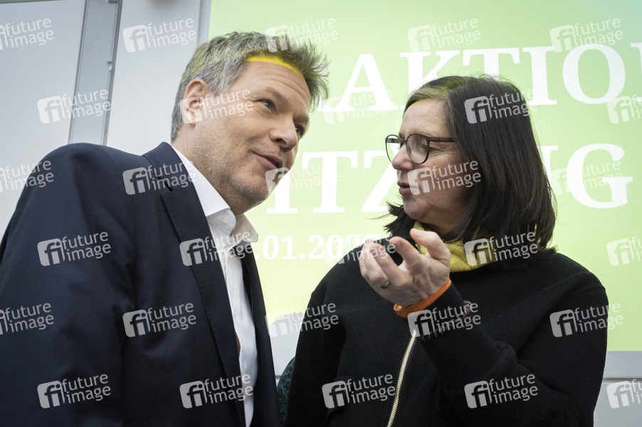 Robert Habeck und Katrin Göring-Eckardt bei der Fraktionssitzung der Bündnis 90/Die Grünen-Bundestagsfraktion im Reichstagsgebäude. Berlin, 10.02.2025