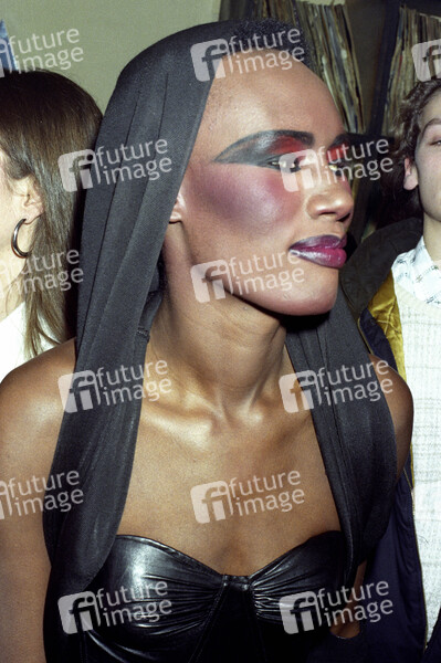 Grace Jones nach ihrem Auftriff in der ZDF TV-Show 'Wetten, dass...?' im Club Casa Blanca. Hannover, 14.12.1985