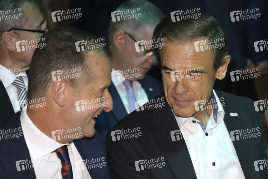 Herbert Diess und Volkmar Denner bei der Eröffnung der Internationalen Automobil-Ausstellung 2019 auf dem Messegelände. Frankfurt am Main, 12.09.2019