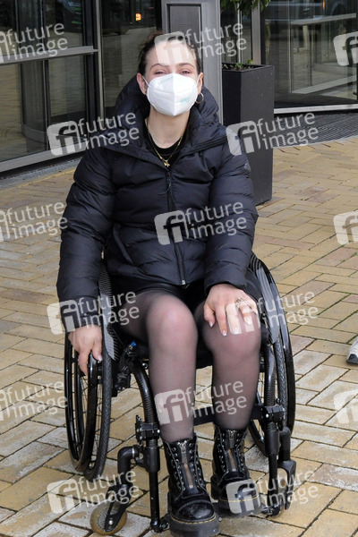 Kristina Vogel bei der Ankunft zur Aufzeichnung der MDR-Talkshow 'Riverboat' im Studio 3 der Media City Leipzig. Leipzig, 09.04.2021