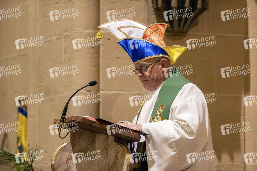 Der karnevalistische Gottesdienst fand unter 3G-Bestimmungen in der Severikirche auf dem Erfurter Domberg statt. Pfarrer Michael Neudert, gab den Karnevalisten, einschließlich den Prinzenpaaren Christian II. und Verena II. und den Kindern Luca I. und Noelanie I. den Segen für die anstehende Kampagne. (Person im Bild: Pfarrer Michael Neudert). Erfurt, 16.01.2022