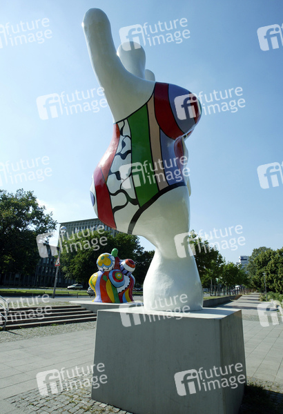 Kunstwerk von Niki de Saint Phalle von 1974, Frauenfiguren mit überdimensionierten Geschlechtsteilen