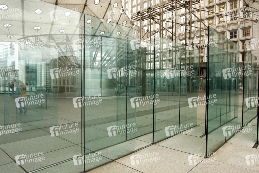 Glasscheiben, Windschutz, La Grande Arche de la Fraternité, modernes Bauwerk in Form eines Triumphbogens, erbaut zwischen 1984 und 1989 auf Initiative des damaligen Präsidenten François Mitterrand, Entworfen von Johan Otto von Spreckelsen und Paul Andreu, Höhe ca. 111 m, Breite ca. 107 m, Länge 112 m, 35 Etagen