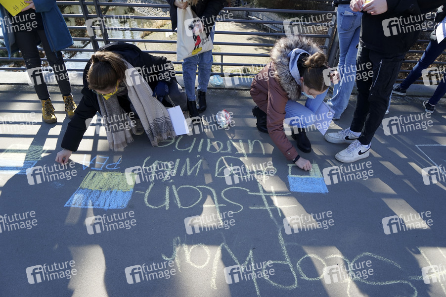 Solidaritätsaktion, Solidarität, Ukraine, Russland, Ukrainekonflikt, Nachrichten, News, Politik, Kriegsgefahr, Frieden, Friedenszeichen, Solidaritätsbekundung, Krieg, Krise, Krisen, Konflikt, Demo, Demonstranten, Protest