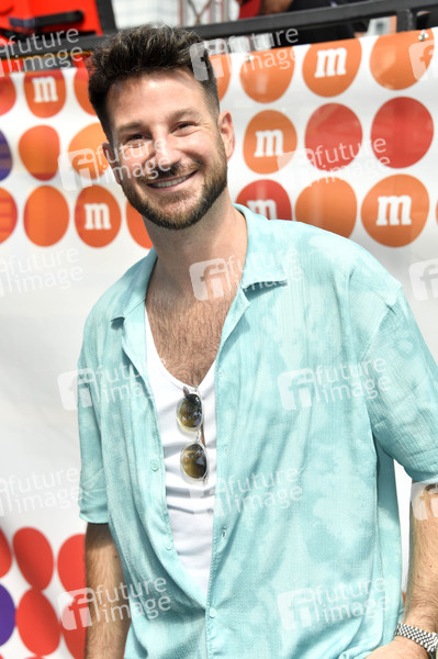 Alexander Schäfer vor dem M&M's Truck bei der 44. Christopher Street Day Parade 2022 unter dem Motto 'United in Love! Gegen Hass, Krieg und Diskriminierung' vom Spittelmarkt auf gut sieben Kilometern über Potsdamer Platz und Potsdamer Straße zum Nollendorfplatz, von dort weiter zur Siegessäule und zum Brandenburger Tor. Berlin, 23.07.2022