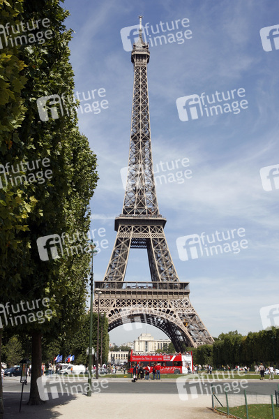 Wahrzeichen von Paris, erbaut zwischen 1887 und 1889 von der Gustave Eiffel & Cie, für die Weltausstellung anlässlich des hundertjährigen Jubiläums der Französischen Revolution erbaut, 300 Meter hoch, über 10.000 Tonnen schwer, für die Öffentlichkeit zugängliche Plattformen befinden sich auf 57 und 115 sowie 276 Meter Höhe