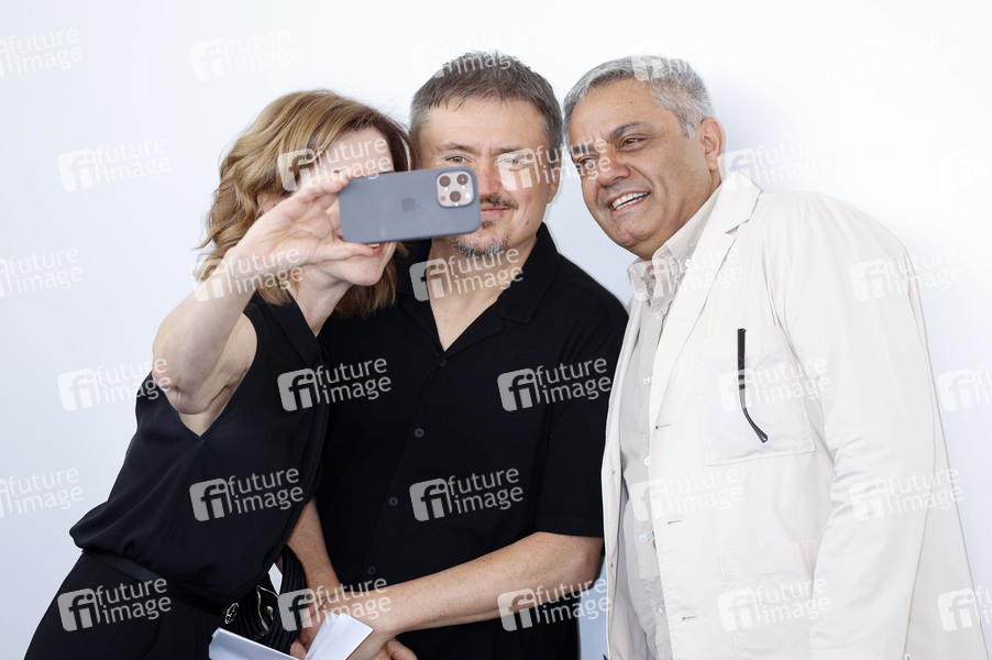 Fernanda Torres, Cristian Mungiu und Mohammad Rasoulof beim Photocall mit der Jury auf der Biennale di Venezia 2025 / 82. Internationale Filmfestspiele von Venedig im Palazzo del Casino. Venedig, 27.08.2025