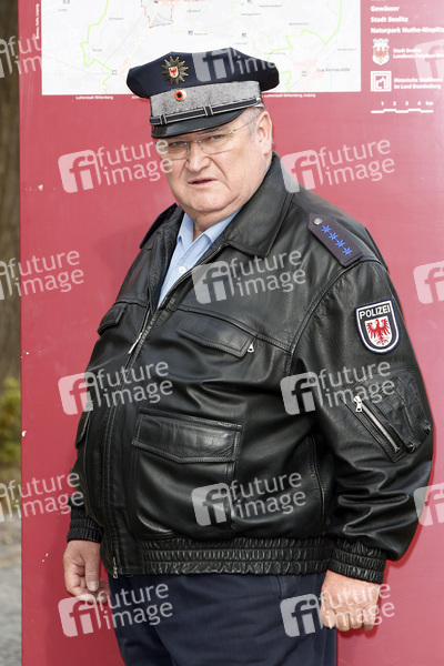Horst Krause beim Fototermin am Set des ARD-Krimis 'Polizeiruf 110 - Käfer und Prinzessin' (AT) am Rathaus Beelitz. Beelitz, 01.11.2013