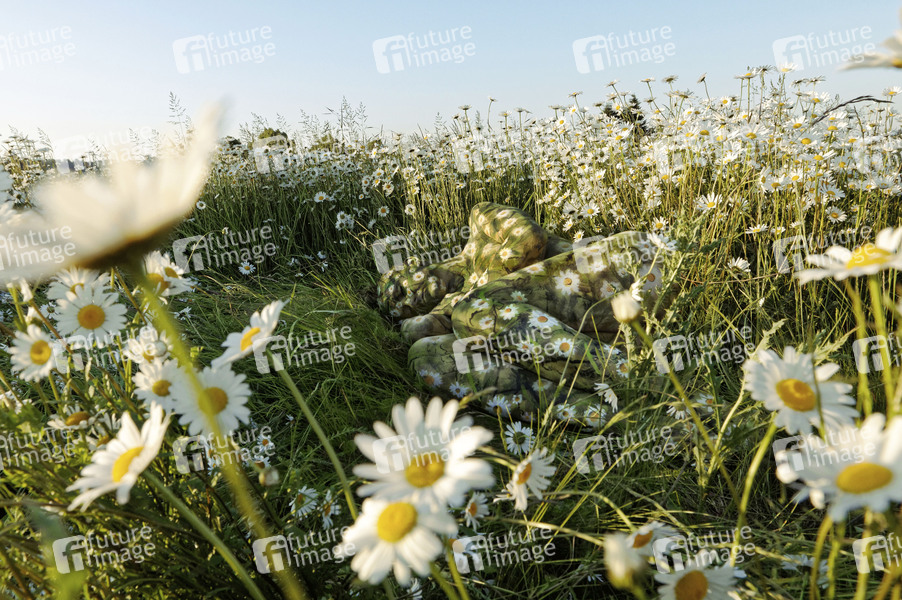 World Nature Conservation Day, Bodypainting, Body Painting, Körperfarbe, Körperkunst, Körpermalerei, Kunst, Art, Akt, Malerei, Camouflage, Farbe, Fotokunst, Fotoart, Frau, Fotomodell, Fotomodel, Model, Aktmodel, Aktmodell, nackt, Nacktmodell, Bodypaintingmodel, Bodypaintmodel, Natureart, Natur, Jahreszeit, versteckte Körper, Natur, Umweltschutz, Naturschutz, Klima, Klimaschutz, Umwelt, Ökologie, Klimawandel, Nachhaltigkeit, Umweltverbände, Margeriten, Wiese, Blume, Blumen, Symbolfoto, outdoor, nude art, naked art, landscape, season, hidden bodies, climate protection, environment, ecology, bodyart, fine art, daisies, meadow, flower, flowers