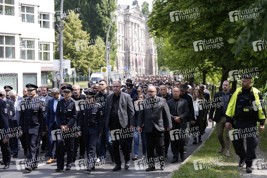 Polizisten in Uniform beim Schweigemarsch für den ermordeten Mannheimer Polizisten Rouven L. vom Potsdamer Platz zur Landesvertretung Baden-Württemberg. Berlin, 07.06.2024