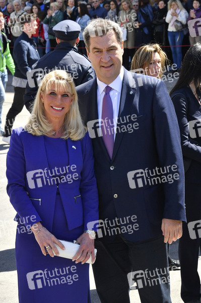 Markus Söder mit Ehefrau Karin Söder bei der Begrüßung der britischen Royals auf dem Max-Joseph-Platz vor der Residenz München. München, 09.05.2019